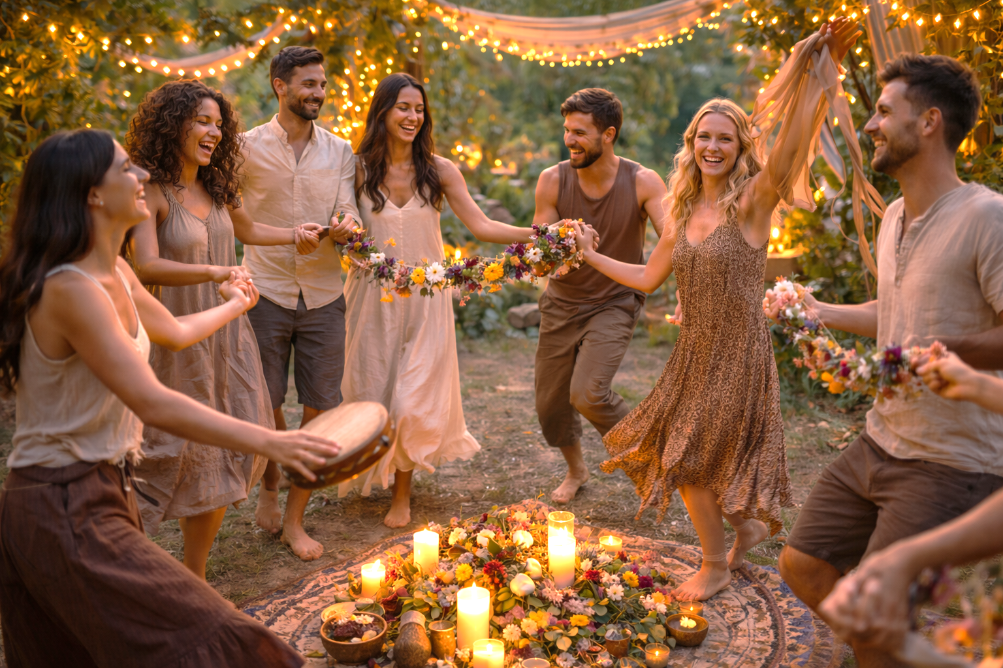Sin dai tempi più remoti, le società umane hanno avvertito il bisogno di riunirsi per vivere esperienze di connessione con la terra e la sua energia, in cerimonie che celebravano tutto quanto fosse percepito come soprannaturale e fonte di meraviglia o timore. Erano cerimonie in cui i simboli acquisivano potenza e capacità di influenzare la vita ed il destino dei partecipanti, a cui si delegavano desideri, aspettative, richieste di conforto e supporto. La corporeità ed i sensi avevano un ruolo dominante nelle cerimonie, in un quadro di convivenza armonica con la natura e tra individui.